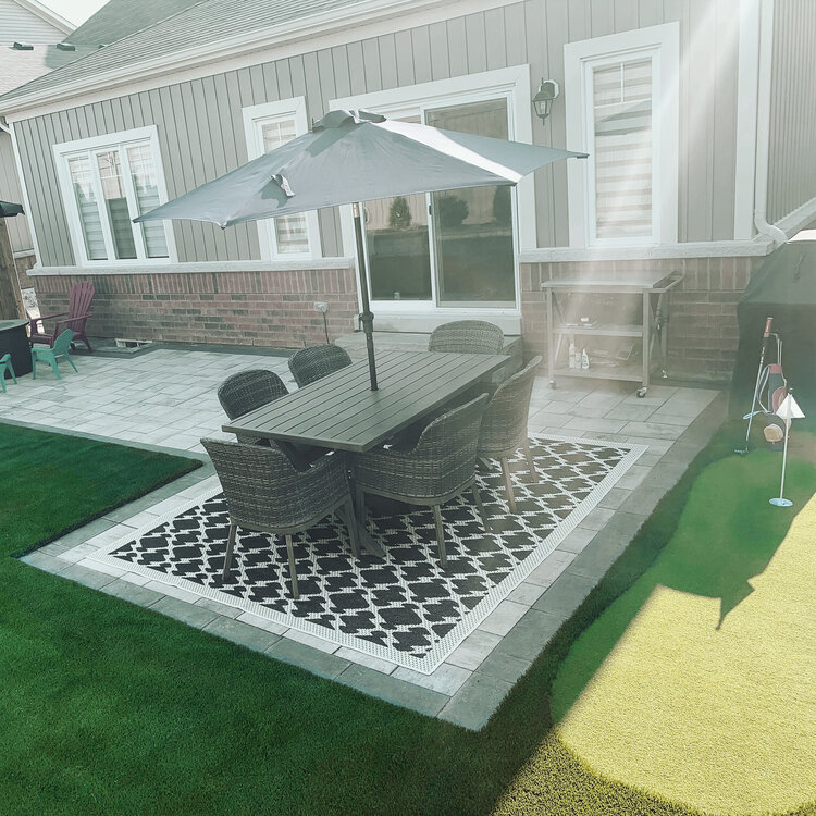 Creative Grass Turf gave us our perfect back yard space!! No more watering or mowing or weeding - and no deck to refinish, or paving stones to crack and heave!! There were several realistic colours and textures to choose from to make this small outdoor space look much bigger - and definitely more usable...